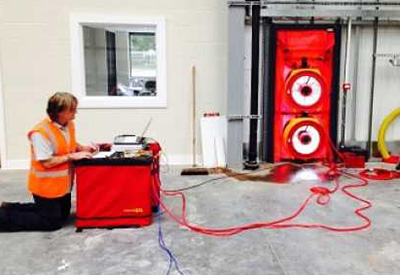 It is important for the test to be conducted at the proper stage of construction to allow any remedial work, if necessary, to be completed with the minimum disturbance of finishes (and minimum cost) for the building envelope contractor. Remedial work could include but may not be limited to sealing of air barrier around electrical outlets and potlights, caulking around windows and doors, use of expansion foam for hard to get at areas, etc. The test is conducted as the building would be lived in.