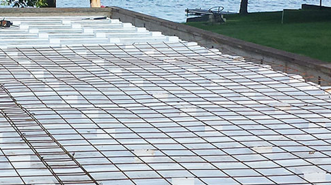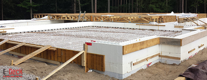 All EPS-Deck insulated EPS concrete floor or roof forms are designed to an exacting specification, strong, secure, with rapid, simple assembly on site. Formed from high quality type 2 expanded polystyrene, with steel or wood support beams doubling as furring attachments, and with integrated mesh support track that also seals against concrete bleed water drip and integrated rebar chairs included in the price. EPS-Deck insulated concrete deck forms can also incorporate PEX/Mesh track for radiant floor heating systems – or for the superior Legalett air radiant heated floor slab system.